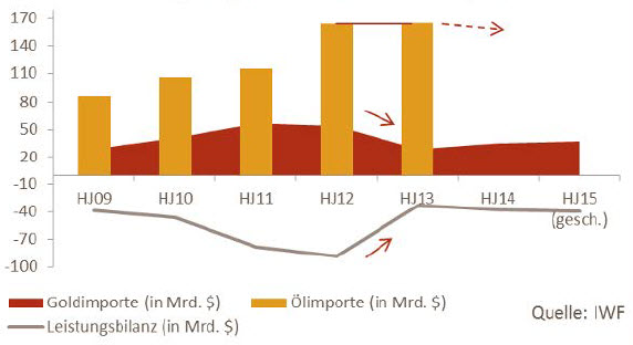 Verbesserung der Außenhandelsbilanz durch geringere Gold- und Ölimporte