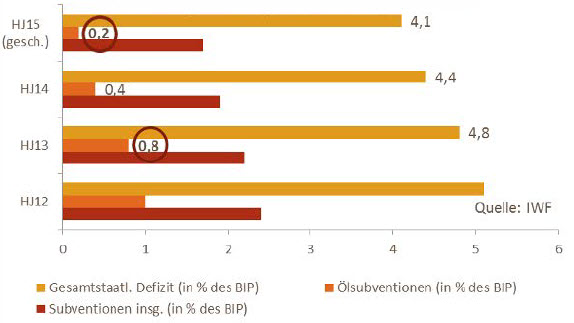 Zufrieden zeigt sich Cecchi mit dem kürzlich vorgestellten Haushalt für 2015 – dem ersten der neuen Regierung. „Er setzt auf eine Steigerung des Wirtschaftswachstums und führt dabei die Haushaltskonsolidierung fort, wenn auch in geringem Tempo“, fasst der Experte zusammen. „Die Regierung plant eine Erhöhung der öffentlichen Investitionen in die Infrastruktur, insbesondere in die Bereiche Transport und Stromerzeugung – zwei chronische Problemfelder für die Wirtschaftsentwicklung.“ Das Finanzreformprogramm sehe eine umfassende Rationalisierung der Subventionen sowie des Steuersystems vor. Zudem hat die Regierung im vergangenen Herbst aufgrund des sinkenden Ölpreises die Dieselsubventionen abgeschafft.