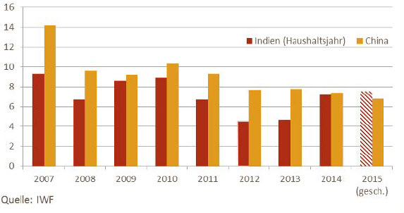 Wirtschaftsentwicklung (in %): Indien wächst schneller als China