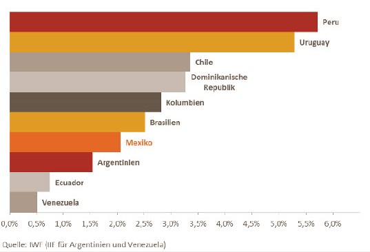 Mexikos Wachstumsentwicklung enttäuscht gegenüber Südamerika (real, in % des BIP)