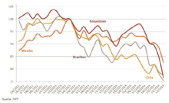 Vanderlinden erwartet, dass der Primärsaldo Mexikos bis 2017 einen Überschuss aufweist. 2013 lag er noch mit 1,5 Prozent des BIP im Minus. „Selbst wenn diese Prognose sich angesichts möglicherweise anhaltend niedriger Ölpreise als zu optimistisch erweist, ist das Risiko einer fiskalen Entgleisung jedoch kurzfristig begrenzt, da sich die mexikanischen Behörden regelmäßig mit dem Kauf von Put-Optionen gegen eine Ölpreisentwicklung unterhalb der im Budget veranschlagten Preise absichern.“