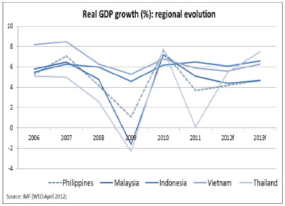 Mittelfristig schätzt der Autor das BIP-Wachstum des südostasiatischen Inselstaates auf durchschnittlich 4,5 bis fünf Prozent. Das Land stehe aber vor der Herausforderung, die Elektronikexporte in einem möglicherweise längerfristig schwächelnden weltwirtschaftlichen Umfeld aufrechtzuerhalten. „Angesichts der wenig diversifizierten Exportpalette wird auf die Entwicklung weiterer zukunftsträchtiger Sektoren wie Tourismus, Agrobusiness und IT-Dienstleistungen wie die Auslagerung von Geschäftsprozessen gesetzt“, weiß Witte. Durch die weniger günstige Entwicklung im Außenhandel habe sich Leistungsbilanz zwar verschlechtert. Allerdings weise sie noch immer einen Überschuss auf, welcher sich in den nächsten Jahren im Bereich von zwei Prozent bewegen dürfte. Angesichts des hohen Öffnungsgrades der philippinischen Wirtschaft sei sie sehr anfällig für Kapitalabflüsse, die durch die Turbulenzen in der Eurozone und Kapitalrückführung von Banken ausgelöst werden. „Das Ausmaß der Ansteckung und der negativen Wirkungen auf die philippinische Wirtschaft dürfte sich jedoch in Grenzen halten, da die Zahlungsbilanz in guter Verfassung und die Abhängigkeit von externer Finanzierung relativ gering ist“, glaubt Witte.