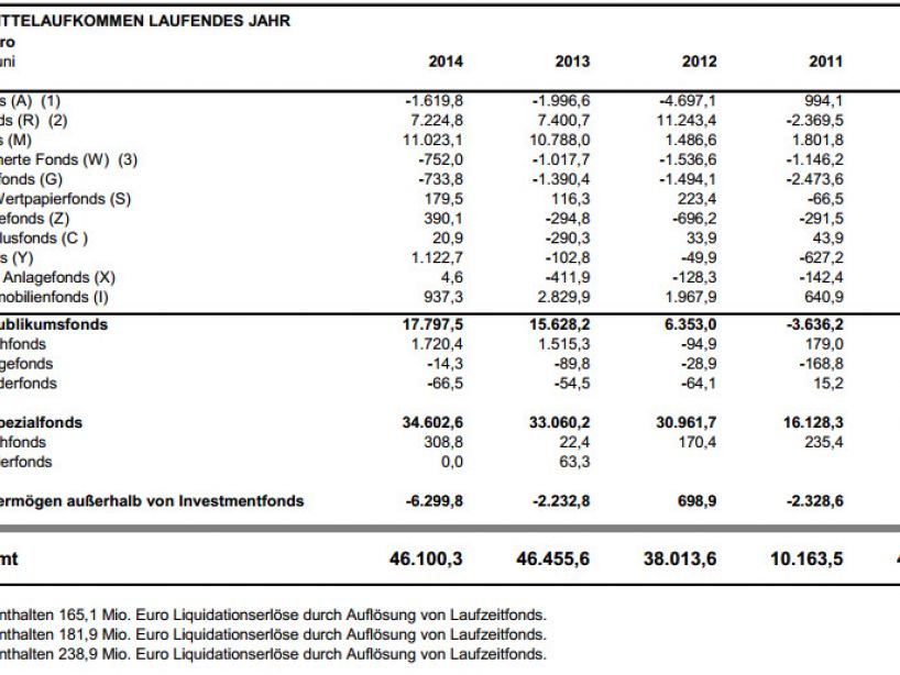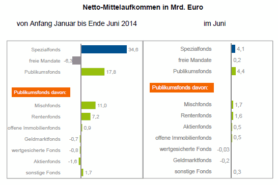 Deutsche Fondsbranche sammelt im ersten Halbjahr 2014 rund 46,1 Milliarden Euro ein. Spezialfonds dominieren.