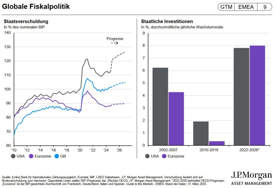 In Bezug auf die Europäische Zentralbank (EZB) sieht Galler noch Spielraum für Zinssenkungen in diesem Jahr, allerdings könnte dieser Zeitraum nicht allzu lange anhalten. „Durch die Fiskalpolitik in Europa – besonders auch in Deutschland im Zuge der gelockerten Schuldenbremse – wird mehr Nachfrage durch den Staat generiert, was ab 2026 erneut Inflationsgefahren hervorrufen könnte. Dies könnte die EZB künftig dazu veranlassen, Zinssenkungen auszusetzen“, erklärt Galler.