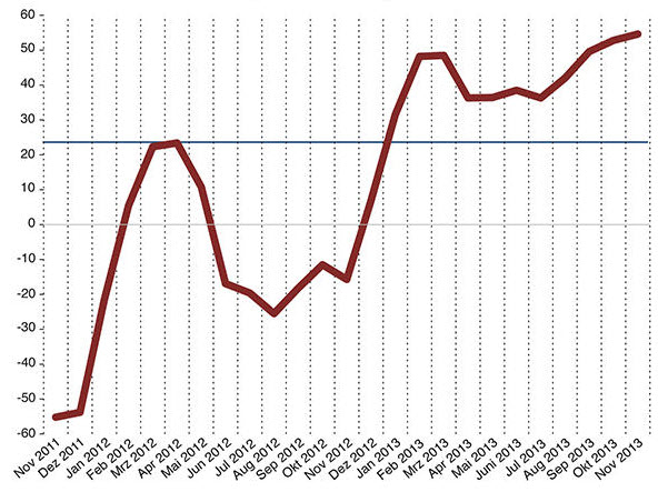 ZEW-Index für Deutschland: Im November 2013 auf einem Vierjahreshoch