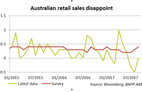 We took profits on the remaining half of our long Australian government bonds versus US Treasuries trade. As a reminder, we had opened this position in anticipation of yield convergence. On the one hand, we had expected Australian yields to fall since most of the positive economic news had already been priced in. On the other, we assumed that the US market had discounted any bad news, with sluggish inflation and a dovish Fed leaving room for an upside surprise in yields. Yields continued to converge, notably driven by news of disappointing retail sales in Australia in September (flat versus an anticipated rise of 0.4% MoM). This position is now fully closed.