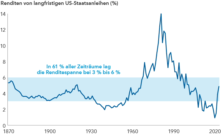 1870 – also in etwa 61 % der Zeit – bewegten sich die Zinssätze meist