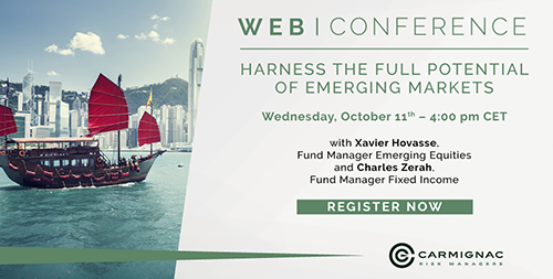 Die wirtschaftlichen Aussichten der Schwellenländer sind gut, was sich positiv auf den Wertzuwachs solcher Anlagen auswirkt. Welche Unwägbarkeiten es gibt es und wie man sich dagegen absichert erläutern Xavier Hovasse und Charles Zerah am Mittwoch, den 11. Oktober.