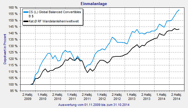 Mit dem CS Global Balanced Covertibles B (ISIN: LU0426279682) bietet Credit Suisse ein solches Produkt an. Der globale Charakter mache es attraktiv: „Interessant sind vor allem jene Produkte, die eine global ausgerichtete Wandelanleihenstrategie verfolgen“, erläutert Geiger. „Anleger können so an den Ertragsperspektiven durch die voranschreitende wirtschaftliche Globalisierung partizipieren. Gleichzeitig ist das Diversifikationsniveau eines globalen Wandelanleihenportfolios deutlich höher als bei rein regionalen Anlagelösungen.“ Im laufenden erhielten Anleger bisher eine Rendite in Höhe von 11,8 Prozent. 2013 underperformte er die Peergroup allerdings mit einem Plus von sieben Prozent. Ein Ausrutscher, wie sich zeigt: Sowohl im Zeitraum von drei Jahren (37,1 Prozent) als auch über fünf Jahre (58,4 Prozent), liegt der Fonds deutlich über der Peergroup.