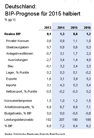 | Deutsche BIP-Prognose für 2015: Halbiert | |