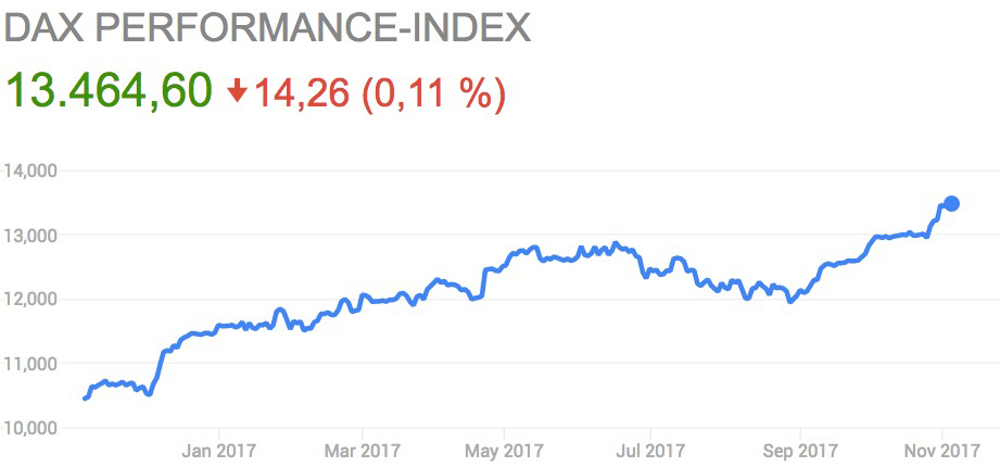 Aktien treten auf der Stelle: Nach den rasanten Kursgewinnen der vergangenen Wochen scheinen die Aktienmärkte heuer eine Verschnaufpause einzulegen. Der DAX, der seit Jahresbeginn 18 und seit September 12 Prozent zugelegt hat, eröffnet die Woche fast unverändert mit 13.458 Punkten. Auf der Verliererseite findet sich die Telekom, deren US-Tochter sich nicht mit dem Konkurrenten Sprint auf eine Fusion einigen konnte. Berenberg senkt das Kursziel auf 14 EUR, die Aktie gibt um mehr als drei Prozent nach.