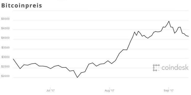 Die chinesische Zentralbank hat eine Reihe von Maßnahmen bekannt gegeben, die den Handel mit virtuellen Währungen blockieren sollen. Chinesische Regulatoren wollen damit verhindern, dass auf breiter Front gegen den Yuan spekuliert wird; aufgrund der fehlenden Konvertierungsmöglickeiten können Chinesen keine Devisen erwerben, Kryptowährungen boten bislang eine der wenigen Möglichkeiten, nicht-chinesische Assets zu kaufen und die strengen Kapitalkontrollen zu umgehen. Ein Verbot des Handels mit Bitcoin und Ether, der zweitwichtigsten Kryptowährung, hätte weitreichende Konsequenzen. Der chinesische Marktexperte Willy Woo schätzt in einem Beitrag für Coindesk den Marktanteil der chinesischen Bitcoin-Börsen am weltweiten Handel auf über achtzig Prozent. Die Marktkapitalisierung von Bitcoin erreicht aktuell rund 57 Mrd. Euro – etwas mehr als die Aktien von BMW, die bei 54 Mrd. Euro liegen.