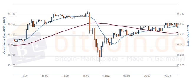 Während in den DAX Ruhe einzukehren scheint, testet die Kryptowährung Bitcoin weiterhin ihre Grenzen. Am Wochenende lief der Kurs gegen 11.866 Dollar. Am heutigen Montagmorgen notierte der Bitcoin mit 11.350 Dollar. Experten gehen davon aus, dass die Aussicht auf die Zulassung von börsengehandelten Bitcoin-Futures den Kurs weiter in die Höhe treiben werden. Ob sich an der Volatilität des Marktes mit dem Eintritt professioneller Händler etwas ändert scheint allerdings fraglich.