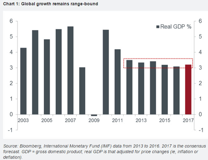 On balance, the big picture is one of an ongoing global recovery that will face the persistent threat of being derailed by politics. Still, while we do seem to have moved into a world in which previously unimaginable geopolitical outcomes are now conceivable, it is far from inevitable that the worst case scenarios will materialise, nor is it obvious that politics will overwhelm the recovery. Even 2016’s political eruptions did not have a lasting impact on economic growth. Indeed, one growth-positive theme worth noting is that governments tend to ease fiscal policy when anti-establishment movements gather momentum. This has already begun to happen in the UK and parts of Europe and will materialise more dramatically in the US soon, if Donald Trump gets his way.