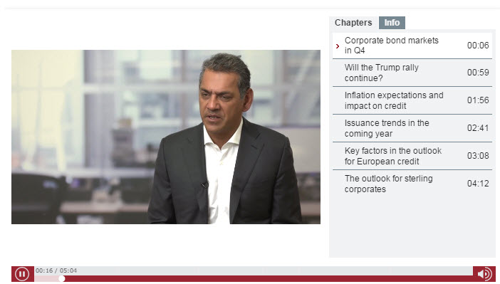 Stephen Thariyan, globaler Leiter des Bereichs Credit, analysiert die jüngsten Entwicklungen an den Unternehmensanleihenmärkten und insbesondere die Aussichten für die europäischen und britischen Märkten. Darüber hinaus geht er der Frage nach, ob die Trump-Rally anhält und beschäftigt sich mit den Inflationserwartungen, den besseren Rahmenbedingungen für Banken und den Emissionstrends in den nächsten zwölf Monaten.