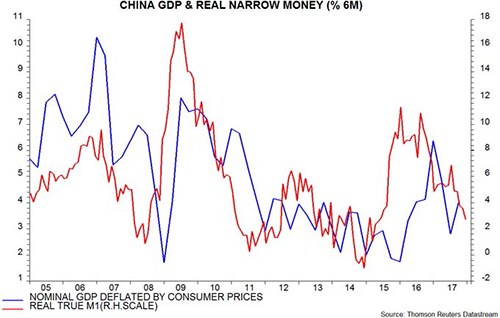 Narrow money trends usually lead house prices, industrial profits and producer prices – all three are likely to slow in early 2018. On past form, the authorities would be expected to respond by starting to reverse policy tightening. Such a policy reversal would be a surprise to the consensus and could give a short-term boost to commodity prices.