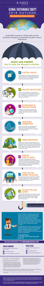 Welche interessanten nachhaltigen Anlagethemen gibt es 2018? Dieser Frage geht Craig Bonthron, Co-Manager des Kames Global Sustainable Equity Fund, nach. Seines Erachtens wird die Disruption beherrschendes Thema bleiben.