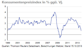 Auch spricht vieles dafür, dass die EZB bei ihrer Sitzung im Dezember Inflationsprognosen für 2014 und 2015 vorstellen wird, die deutlich unter ihrem Inflationsziel liegen werden. Zweifellos besteht vor diesem Hintergrund Handlungsbedarf für die EZB, um mit einer Lockerung der Geldpolitik die Inflation mittelfristig wieder in den Zielkorridor zurückzubringen.