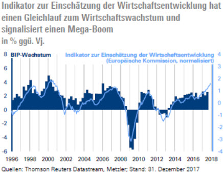 Der Indikator zur Einschätzung der Wirtschaftsentwicklung (Dienstag) sowie die Einkaufsmanagerindizes (Donnerstag) stehen derzeit sogar im Einklang mit einem kräftigen Wachstumsschub auf etwa 4,0 % zu Jahresanfang.