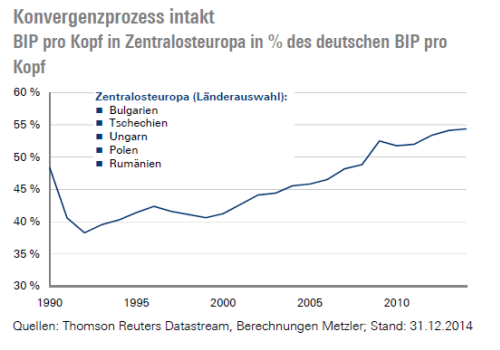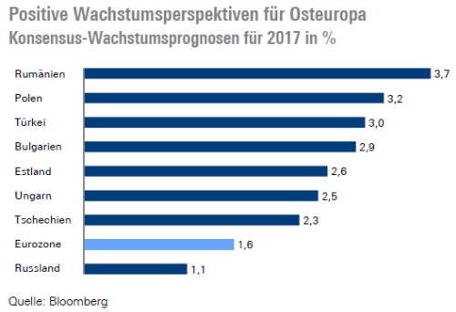 Laut einer Umfrage der Unternehmensberatung Deloitte unter internationalen Automobilfirmen im Jahr 2016 ist Zentralosteuropa nach wie vor ein sehr attraktiver Investitionsstandort, bedingt durch niedrige Lohnkosten, die Verfügbarkeit gut ausgebildeter Arbeitskräfte und niedrige Unternehmenssteuern. So ist es auch nicht verwunderlich, dass die Wachstumsprognosen vor allem für die zentralosteuropäischen Länder für 2017 deutlich die der Eurozone übertreffen.