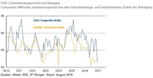 Völlig überraschend brachen die ISM-Einkaufsmanagerindizes der Industrie und des Dienstleistungssektors im August ein. Chefvolkswirt bei Metzler Asset Management, Edgar Walk, sieht dennoch mehr Chancen für eine moderate Wachstumserholung in den kommenden Monaten.