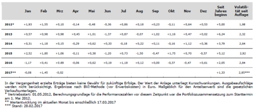 Fondsvermögensverwaltung, die ein Investmentziel von drei bis sechs Prozent pro Jahr anstrebt. Interessant für Anleger, die nicht länger bereit sind ihr Kapital den Schwankungen der Märkte auszusetzen. Durch die Steuerung über Risikoparameter und Korrelationen wird eine deutliche Reduzierung der Wertschwankungen erreicht.