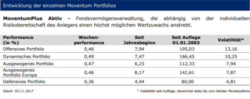 Eine Übersicht über die Wertentwicklung MoventumPlus Aktiv finden Sie hier.