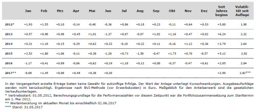 Im Rentenbereich entwickelten sich Unternehmensanleihen mit Investment-Grade-Rating am besten, gefolgt von Hochzinsanleihen und Staatsanleihen, wobei Staatsanleihen leichte Verluste hinnehmen mussten. US-Staatsanleihen wiesen, auf währungsgesicherter Basis, eine klare Outperformance auf und auch Anleihen aus den Emerging Markets (sowohl Hart- als auch Lokalwährungsanleihen) schnitten besser ab als Euro-Staatsanleihen.