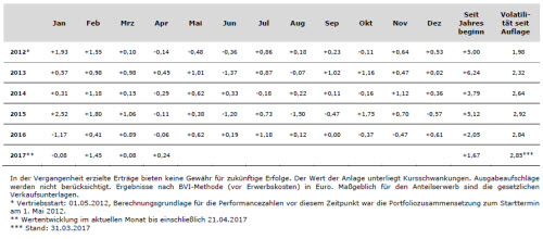 In der vergangenen Handelswoche wurden aus China überraschend positive Daten zur wirtschaftlichen Entwicklung vermeldet. Demnach zog das zuletzt rückläufige Wirtschaftswachstum wieder an und erreichte einen Zuwachs von 6,9 Prozent im ersten Quartal 2017. Auch bei den Einzelhandelsumsätzen und der Industrieproduktion ergaben sich klare Verbesserungen. Dennoch dürfte nach der jüngsten Entwicklung für den weiteren Jahresverlauf nur mit moderateren Wachstumsraten gerechnet werden. In der Eurozone zeigten sich die ersten Schätzungen der Einkaufsmanagerindizes für April gemischt. Nach bisher sehr starken Werten für die deutsche Wirtschaft in 2017 gaben die Bereiche verarbeitendes Gewerbe und Dienstleistungen leicht nach. Auf europäischer Ebene kam es hingegen nochmals zu Verbesserungen bei beiden Werten. Damit bestätigt sich der Eindruck, dass die positive wirtschaftliche Entwicklung in der Eurozone breit über die Länder gestreut ist. In den USA kam es bei den Frühindikatoren Empire StateIndex und Philly Fed-Index jeweils zu spürbaren Rückgängen. Auch bei den ersten Schätzungen der Einkaufsmanagerindizes für April kam es zu schwächeren Notierungen.