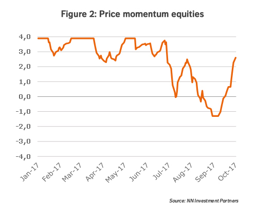 As Figure 2 illustrates, however, we observed in the past week some improvement in the market dynamics, driven by momentum and/or sentiment. As a consequence we decided to upgrade equities from neutral to a small overweight.