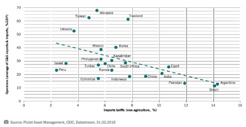 One obstacle is that Brazil and Argentina currently have the highest import tariffs (14.1% and 14.3% respectively, excluding agricultural products) and are also fairly closed economies (see Fig.2).