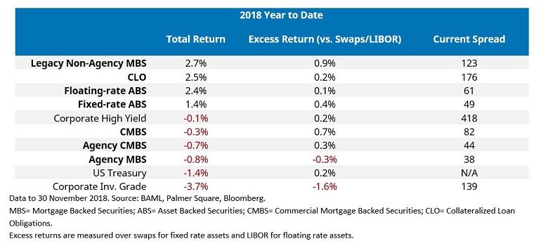 With boosters like the Trump tax package, the US economy has grown more than other developed markets in 2018. The US consumer is strong, household balance sheets are healthy, and debt service costs (mostly fixed-rate) remain low. These factors are all strong fundamental supports for US asset-backed securities (ABS) and MBS.