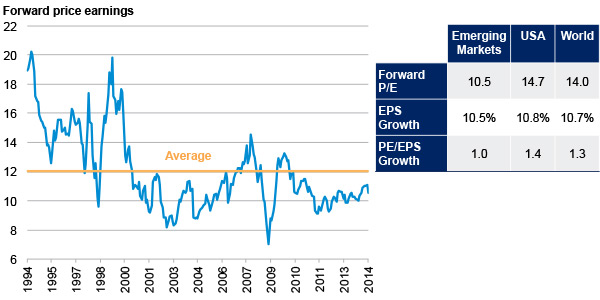 As 2014 has progressed, what has become increasingly apparent is the sub-trend and divergent nature of the recovery in global growth. The only developed economy really showing momentum is the US while growth in the eurozone and Japan is stalling and unorthodox policy measures are being increasingly employed. Consequently, rather than assessing how global emerging markets (GEMs) will fare in a global expansionary cycle, we find ourselves instead focusing on how GEMs might perform in a low growth world.