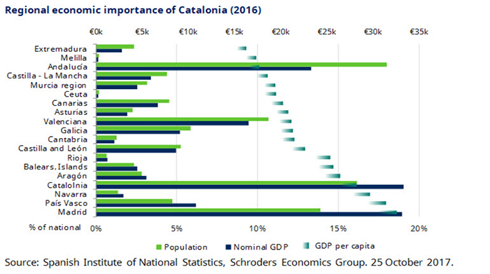 We do not expect the Catalans to achieve independence, at least not without the consent of the rest of Spain, but in the meantime, the uncertainty of the potential break-away for the Catalan region could dampen growth.