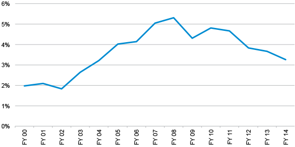 Last year saw the return of the Indian investor to the equity market after many years and we expect the inflows to continue into 2015 as well. Equity ownership within Indian households remains abysmally low – both in absolute terms as well as compared to historical levels seen in 2007-08. As these holdings start to normalise, they can sustain large inflows into equities. Large domestic inflows are structurally important for the market for two reasons. Firstly, they can provide a counter-balance to Foreign Institutional Investor flows and secondly, they also allow the absorption of the equity supply that will hit the market in 2015 as the bull market matures.