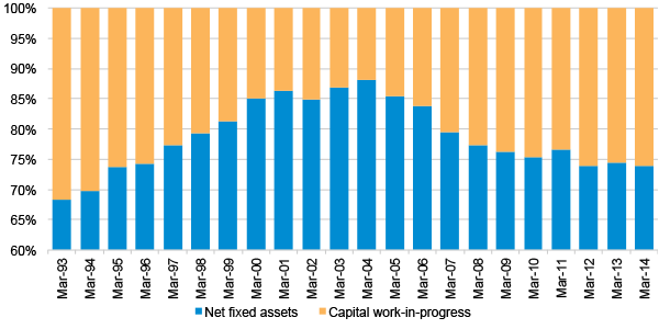The high number of capex projects that are under way should start paying off as delayed projects get back on track. The new government has sharply fast-tracked project approvals and is also untangling other roadblocks such as coal availability and fuel linkages for power plants. Furthermore, a number of leveraged companies are exiting projects that they do not have the capacity to finish. These projects are being acquired by companies and funds with plans to get them commissioned as soon as possible and this is being facilitated by banks that are under pressure from the Reserve Bank of India (RBI) on restructured loans and non-performing assets (NPAs). For example, a few companies in the power sector have announced initiatives to acquire troubled power plants with similar initiatives underway in other infrastructure sectors such as highways and ports. Buoyant equity markets will allow companies and private equity funds to raise capital to invest in such projects.