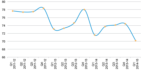 Input cost inflation for the manufacturing sector has been high in recent years on account of high global commodity prices and a weak currency. The sharp fall in commodity prices (especially crude oil) and the stability in the Indian rupee (on account of improved macro fundamentals) should bode well for bringing down input costs and improving margins. The fall in commodity prices is also helping bring down inflation in the economy. This fall in prices is creating the headroom for lower interest rates, which should bring down finance costs for companies.