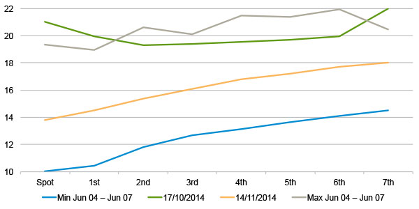Figure 2: VIX futures curve movement over time