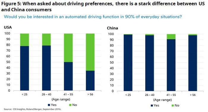 Openness to change even extends to automated driving. Personally, I would rather drive myself, even if there is a risk I might run into the back of a truck, but this is clearly not a preference shared by Chinese travellers. Strikingly, it seems that every age group is ready to embrace automated driving (Figure 5).