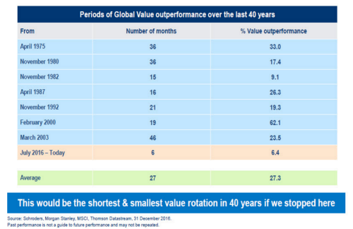 It’s not too late to get on board the value rally, according to a panel of Schroders fund managers, and a renewed focus on investment styles is here to stay. Until 2016 it had been nearly 10 years of plain sailing for growth stocks and the value investment style had been left in its wake.