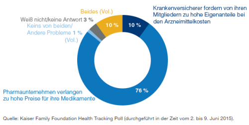Abbildung 1: Warum sind verschreibungspflichtige Medikamente so teuer? 73 % der Befragten halten die Kosten für verschreibungspflichtige Medikamente für unzumutbar. Sie gaben folgende Gründe für ihre Meinung an:
