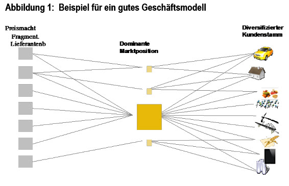 Bei Investitionen in ein Unternehmen achten wir in erster Linie auf die Preisgestaltungsmacht. Abbildung 1, unten, zeigt, wonach wir suchen: nach Unternehmen mit beherrschender Marktstellung, die einerseits eine Vielzahl an Zulieferern ohne große Verhandlungsstärke haben, und zum anderen über einen diversifizierten Kundenstamm aus Tausenden oder sogar Millionen von Kunden verfügen, die selbst wiederum die Preisgestaltung des Unternehmens nicht beeinflussen. Wir suchen nach Marktsektoren, die stabile, hohe Marktbarrieren zur Sicherung der Preisgestaltungsmacht der Unternehmen und strukturelle Wachstumsfaktoren aufweisen.