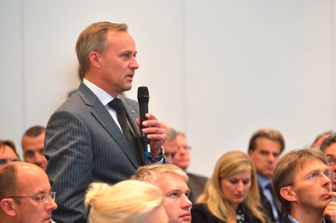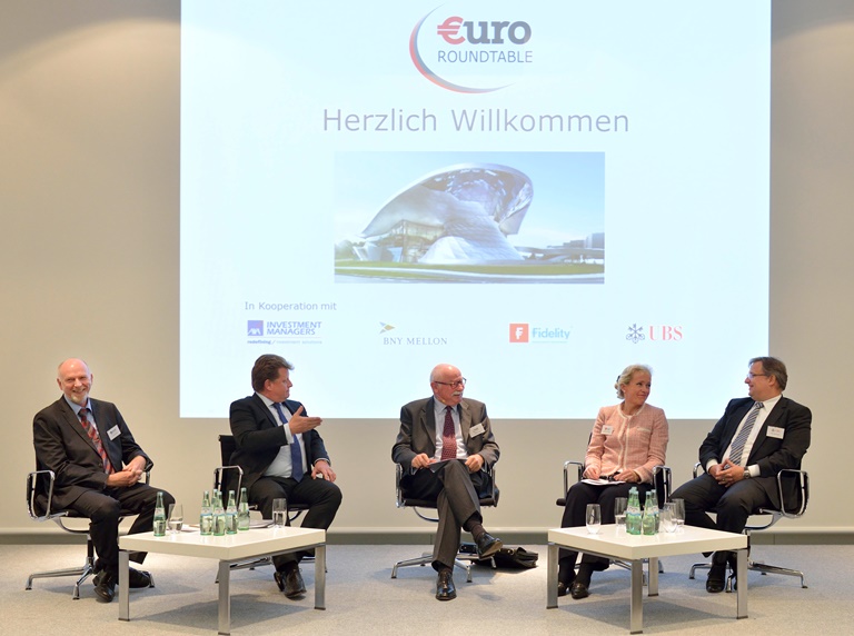 Im Anschluss wurde diskutiert. Unter Leitung des renommierten Volkswirts Martin Hüfner, nahmen Franz Wenzel, Chefvolkswirt bei AXA Investment Managers, Holger Fahrinkrug, Chefvolkswirt bei Meriten, einer Tochter von BNY Mellon, Alexandra Hartmann, Portfoliomanagerin bei Fidelity Worldwide Investment sowie Reto Huenerwadel, Europavolkswirt bei UBS, Stellung zu der Frage „2014: Ende der Eurokrise?“ Schnell waren sich die Diskutanten einig, dass sich die Eurokrise in etwa in der Halbzeit befinde. AXA-Mann Wenzel gab zu bedenken, dass der Abstieg von einem Berg immer schneller gehe als der Aufstieg. Geduld sei daher gefragt. Nach Ansicht von UBS-Mann Huenerwadel haben die europäischen Krisenstaaten sichtbare Fortschritte gemacht. Portugal habe alle Forderungen der Troika mehr als erfüllt, nur gebracht habe es nichts. Daher bleibe ein Rest Skepsis. An ein Ende der Krise im kommenden Jahr glaubt niemand ernsthaft.