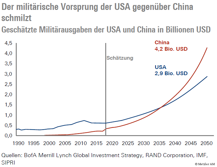 Auch spielt die Zeit China in die Hände. Schon 2035 dürften die chinesischen Militärausgaben die der USA übersteigen. Diese Perspektive ist sicherlich auch der Grund, warum die USA gerade jetzt den Konflikt forcieren, solange ihre Position noch überlegen ist.