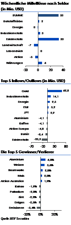 In Industriemetallkorb-ETPs flossen 14,1 Mio. USD, was einem Siebenwochenhoch entspricht.