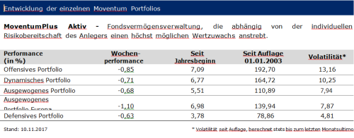 MoventumPlus Private Wealth Management – Fondsvermögensverwaltung, die ein Investmentziel von drei bis sechs Prozent pro Jahr anstrebt. Interessant für Anleger, die nicht länger bereit sind ihr Kapital den Schwankungen der Märkte auszusetzen. Durch die Steuerung über Risikoparameter und Korrelationen wird eine deutliche Reduzierung der Wertschwankungen erreicht.