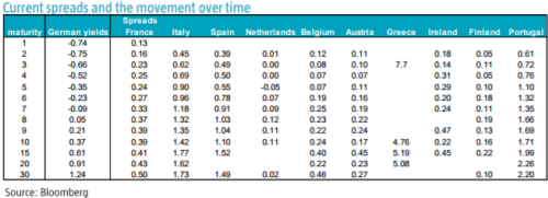 S&P has nudged up Italy’s rating one notch to BBB, citing the country’s firming economic recovery on the back of rising private-sector investment and employment. Factors supporting the upgrade include improving economic prospects, expansionary monetary policy, reduced risks from its banking sector and expectations that the government would be able to make progress in reducing its “very high” government debt-to-GDP ratio. S&P analysts added: “The stable outlook balances the potential for more-robust economic growth and further improvements in the monetary transmission mechanism over the next two years, against persistent political uncertainties and their potentially adverse implications for economic and budgetary credit measures.”