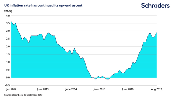 The Office for National Statistics (ONS) revealed that its Consumer Prices Index (CPI) 12-month rate was 2.9% in August 2017.