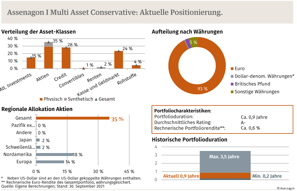 Für Anleger, die einen Stabilisator ins Depot nehmen wollten, der auch regelmäßig attraktive positive Renditen liefert, sei der Fonds Assenagon Multi Asset Conservative eine passende Lösung. Hier fänden Investoren Aktien, Gold, Absolute-Return-Strategien und Zinsstrategien unter einem Dach.