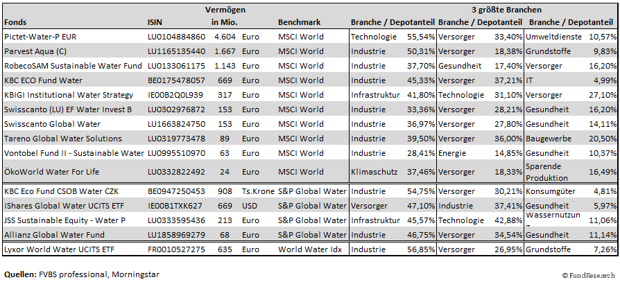 Die Fonds investieren nicht nur in Wasserversorger, sondern auch in Themengebiete rund um das Thema Wasser: Dazu zählen Wasseraufbereitung, wassersparende Technologien und Infrastruktur-Unternehmen, die dafür sorgen, dass Wasser möglichst effizient und ohne Verluste zu den Destinationen gelangt, wo es gebraucht wird.